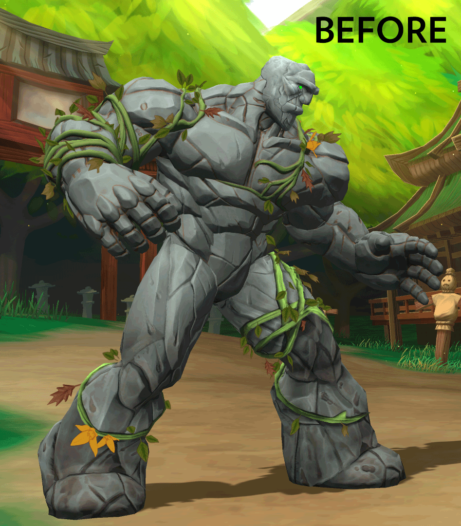 --All of Rook’s hit reactions are now animated for real. This is a bigger improvement than for other characters because Rook’s placeholder animations had several technical problems where his body scrunched up or collapsed in on itself. His new hit reactions are animated just for him and make more sense for his size and weight.